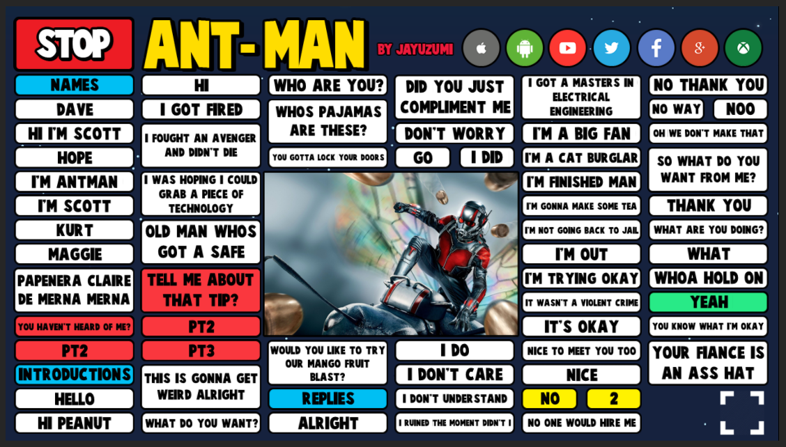 ANT-MAN ADDED → Ant-Man soundboard with over 100 of his best quotes by the actor Paul Rudd in this funny Marvel movie PREVIEW